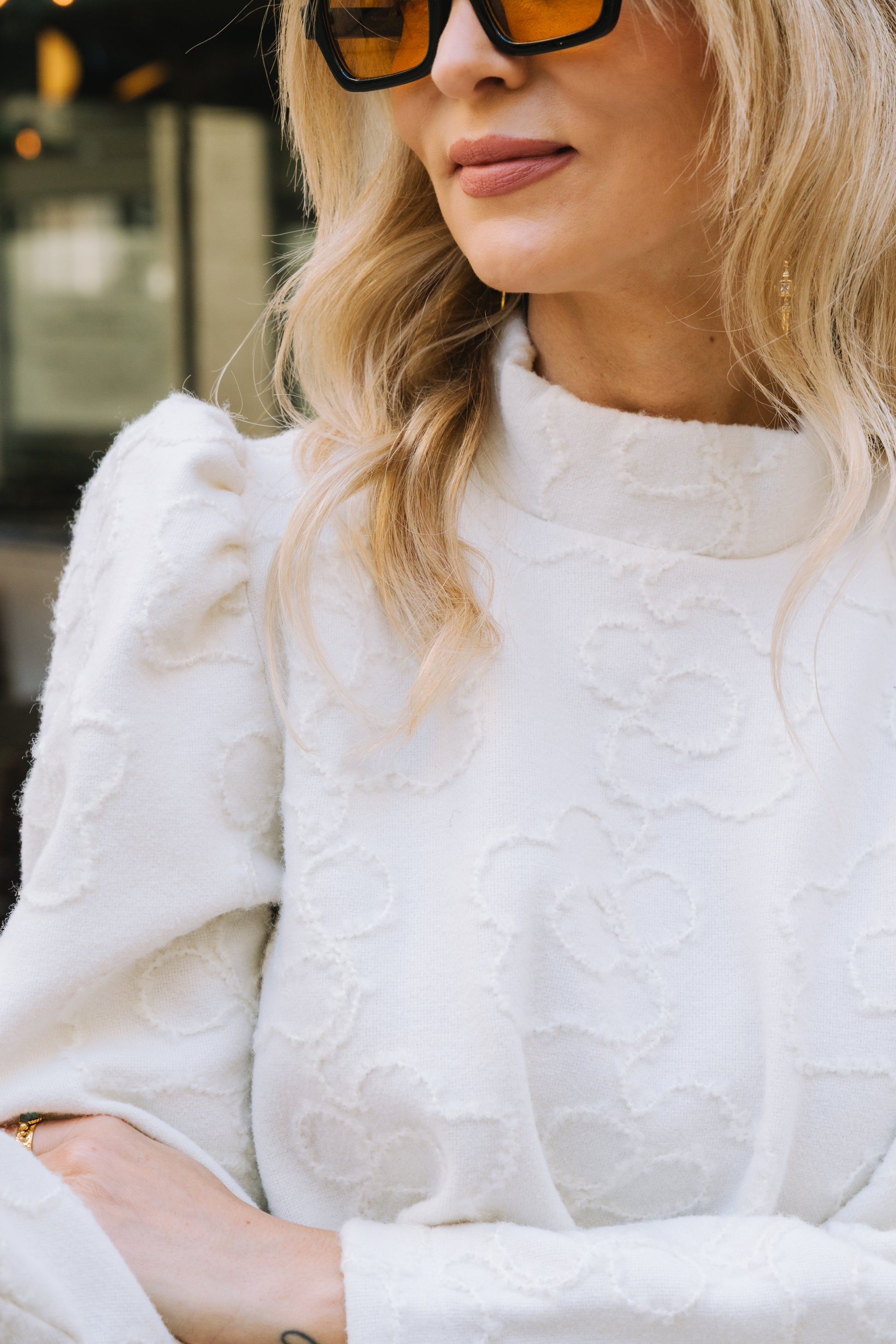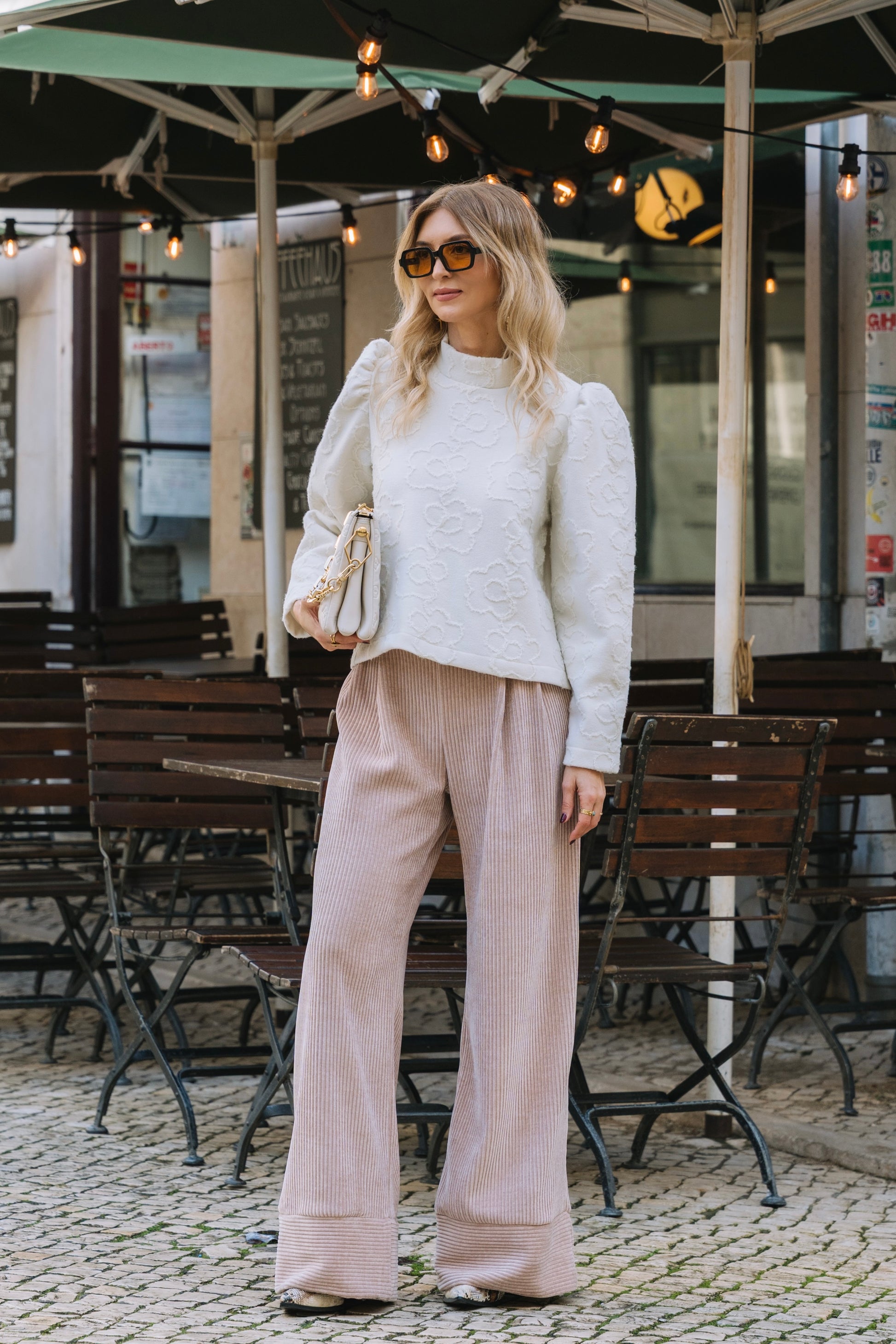 Manga dramática, bastante abalonada na zona do ombro e a direito, até ao pulso.
